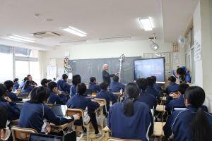 1月20日(火)、本校の竹国和平教諭が、7年生のクラスにおいて県の初任者研修「授業実践研修(社会科)」を実施しました。県内各地から14名の初任者の先生方が参加され、授業の様子を参観されました。
