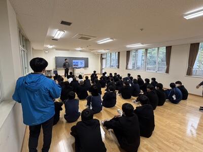 講師の方々に自転車の正しい乗り方、日常生活に潜む危険について具体的な事例を交えながらわかりやすくご指導いただきました。生徒たちは真剣な表情で話を聞き、交通ルールの大切さや自分の身を守る行動について理解を深めることができました。