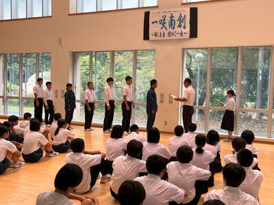 練習後には、顧問の先生から大会当日の走順が発表されました。前日ということもあり、生徒たちには少し緊張した様子も見られましたが、それも本番に向けた真剣な気持ちの表れだと思います。