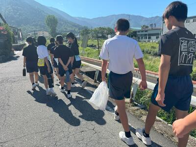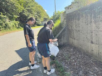 8月21日(木)に、女子バレー部と柔道部が地域の清掃活動を行いました。