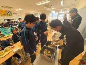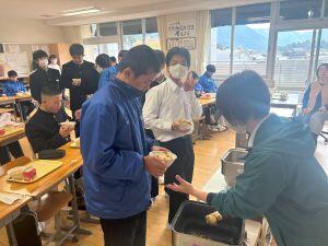 生徒たちは、ふるさと宍粟の豊かな恵みに感謝しながら、笑顔でおいしそうに食べていました。おかわりをする姿も多く見られ、食事を楽しむ気持ちがしっかり育っていることを感じました。